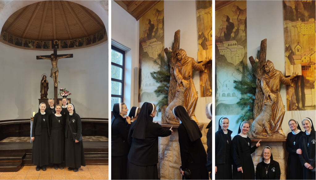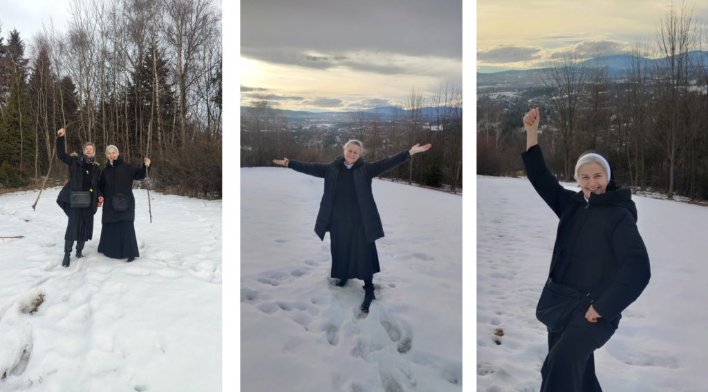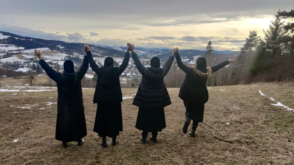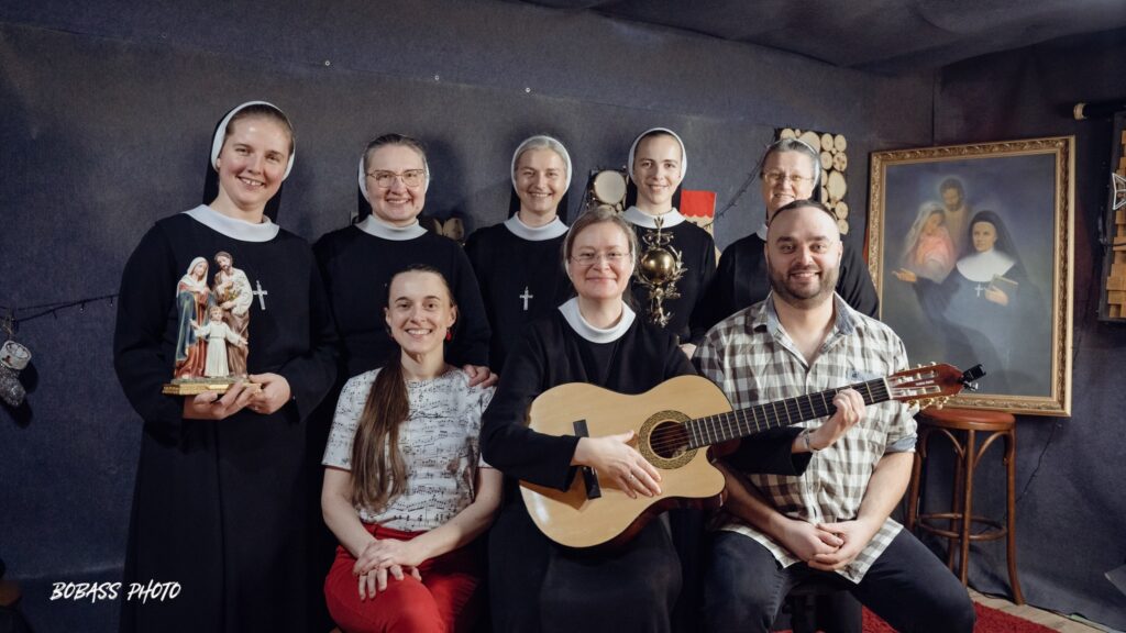 Kilka lat temu, gdy przygotowywałyśmy się do świętowania Jubileuszu 150 lat istnienia Zgromadzenia napisałam piosenkę nawiązującą do charyzmatu Zgromadzenia, czyli szerzenia Królestwa Bożej Miłości. Siostra Natalia zajęła się melodią i nagrałyśmy ją w rabczańskiej kaplicy z zaprzyjaźnionymi muzykami:  Jadzią Czajkowską – organistką z parafii Św. Teresy od Dzieciątka Jezus w Rabce – Zdrój oraz z Piotrem Kowalcze – skrzypkiem i lutnistą, z którym graliśmy razem na Mszach św. z modlitwą o uzdrowienie w Rabce i Ludźmierzu. Wtedy zrodziło się pragnienie nagrania piosenek o naszym Zgromadzeniu i charyzmacie oraz Matce Założycielce. W tym roku udało się to zrealizować za zgodą naszej Siostry Prowincjalnej Julitty i jej Rady. Zebrałam piosenki w jeden śpiewnik (aż 41 piosenek, w tym kilka krótkich modlitw), a Siostra Natalia zajęła się aranżacją muzyczną, wstępnym nagraniem do indywidualnej nauki przez pozostałe Siostry. Muzycy z Rabki zgodzili się zaangażować w nasze nagrania. I przygoda się zaczęła. Powstał zespół „Radość Nazaretu” w składzie: S. Natalia Wejnerowska, S. Estera Smok, S. Joanna Mojeścik, S. Anita Stankiewicz, S. Monika Czyżycka i ja, S. Bogumiła Malikowska. Od 10 lutego zaczęłyśmy próby w całym składzie, najpierw w Krakowie, a potem w Rabce.  Finalnie, 12 lutego zaczęły się nagrania w Chabakoovce – studiu nagrań Pana Jakuba Wilka „Bobassa”. Muzyka, śpiew i śmiech przeplatały się non stop. Atmosfera otwartości, akceptacji, wyrozumiałości oraz ogromnego profesjonalizmu nagrywającego dodawały nam odwagi, a śpiewu i gry było naprawdę dużo, bo aż 15 piosenek. Nocowałyśmy u Sióstr Franciszkanek, które były  bardzo otwarte na naszą obecność i próby w ich domu. W Tłusty Czwartek poszłyśmy na górę Grzebień -wspólna modlitwa, śpiew, radość, śmiech i zdjęcia. Potem odwiedziłyśmy wspólnotę naszych Sióstr by świętować wspólnie przy kawie i chrustach radość z realizacji nagrań naszych pieśni.