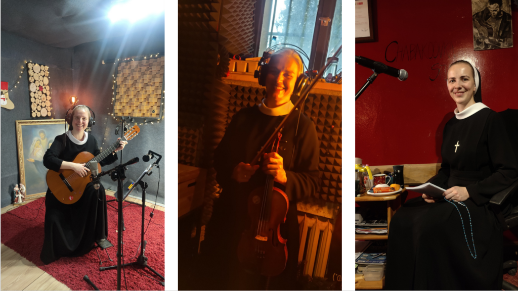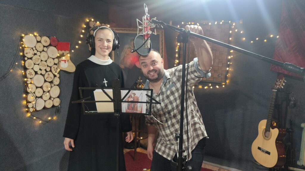 Pragnienie nagrania pieśni śpiewanych w naszym Zgromadzeniu zrodziło się we mnie już kilka lat temu. Dzięki zapałowi s. Bogumiły udało się to zrealizować właśnie teraz. Pan Bóg tak to wszystko poprowadził, że dał o wiele więcej niż sobie wyobrażałam. Kiedy wstępowałam do klasztoru zostawiłam pasję muzyczną trochę „na boku”. Bóg jednak cały czas udowadnia, że zostawiając coś dla Niego otrzymuję jeszcze więcej. I tak się stało. Nowe aranżacje naszych pieśni nagrane w profesjonalnym studio z ludźmi z pasją do muzyki – to było dla mnie piękne przeżycie. Jestem wdzięczna Siostrom, z którymi spędziłam te dni. Czas był wypełniony przede wszystkim śpiewem i grą na instrumentach, a w następnej kolejności było dużo dużo śmiechu, aż do bólu brzucha – ćwiczenia na przeponę miałyśmy opanowane do perfekcji 😉 Oprócz Sióstr można także usłyszeć zaprzyjaźnionych profesjonalnych muzyków, których zapoznałyśmy z s. Bogumiłą kilka lat temu będąc na placówce w Rabce. Czas nagrań był bardzo intensywny, ponieważ nagranie 15 piosenek w ciągu niecałych 3 dni to jest jednak wyczyn. Nad całością czuwał właściciel studia nagraniowego Kuba, który swym poczuciem humoru i pasją zarażał także nas. Mam nadzieję, że owoc naszej pracy będzie pięknym dowodem naszej miłości do Matki Założycielki i Zgromadzenia.